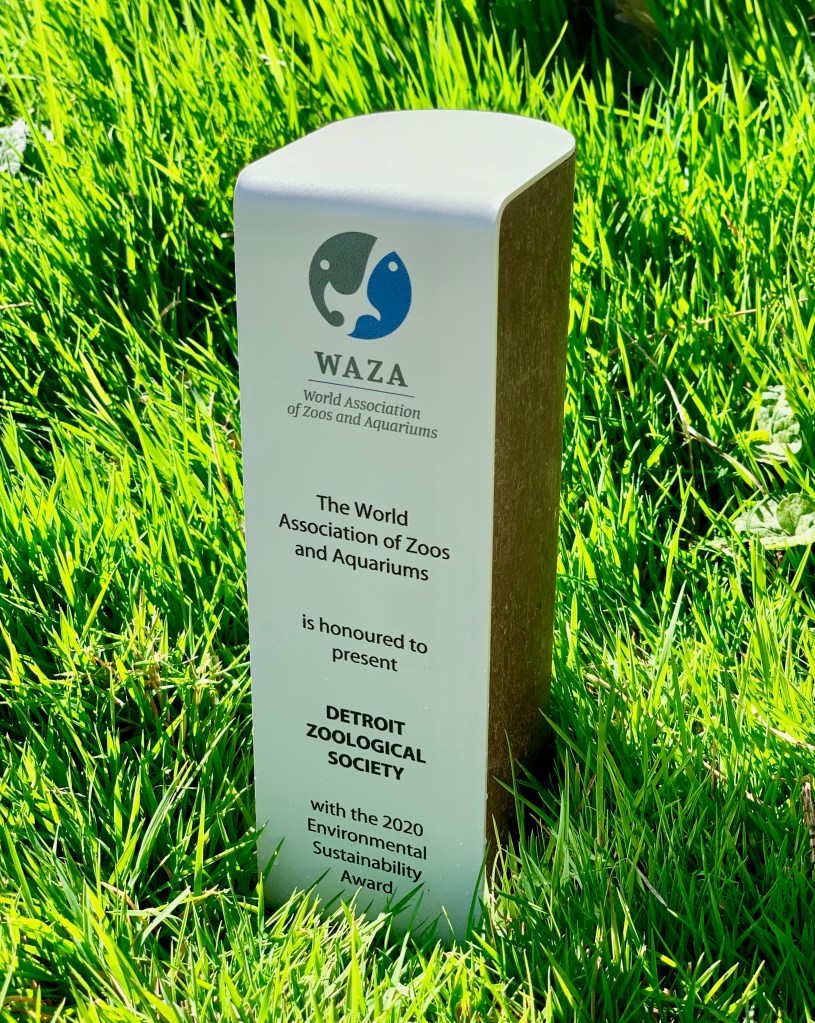 The Detroit Zoological Society (DZS) has been recognized by the World Association of Zoos and Aquariums (WAZA) as the recipient of the 2020 Environmental Sustainability Award. The DZS is the first zoo or aquarium to receive environmental sustainability top honors from both WAZA and the Association of Zoos and Aquariums (2015).